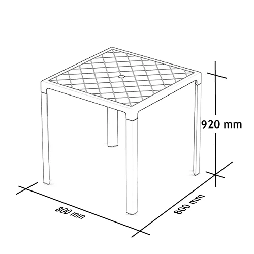 A Mesa Fortaleza possui um orifício central com tampa removível para passagem do tubo do Guarda Sol quando é necessário. As pernas da Mesa Fortaleza podem ser removidas facilmente para guardar, mas em caso de precisar de guardar várias mesas, podem ser empilhadas umas nas outras apenas com uma pequena rotação.